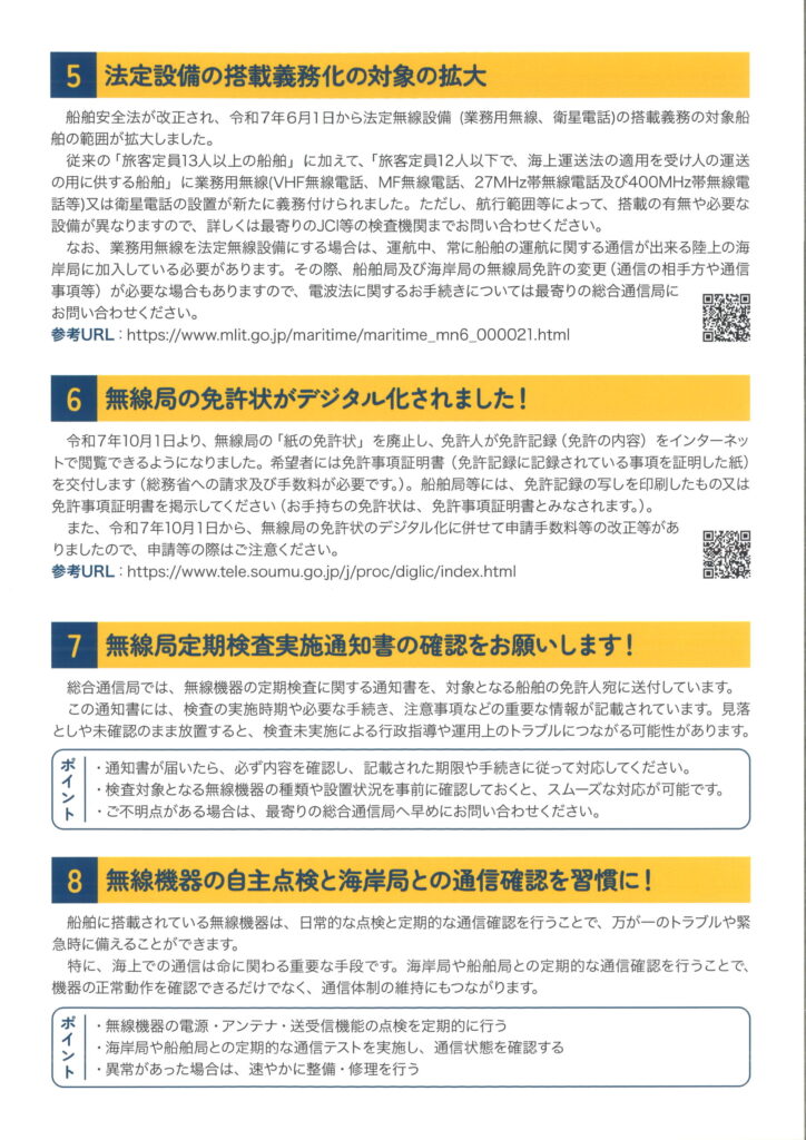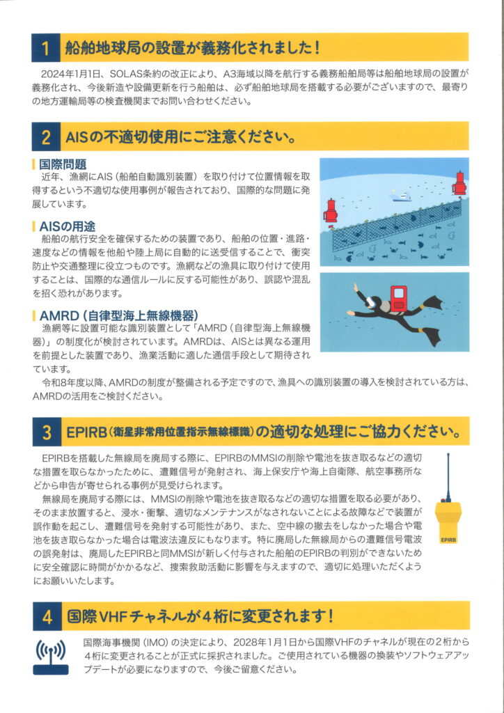 海上無線に関する制度変更・注意事項のお知らせ(総務省資料より)