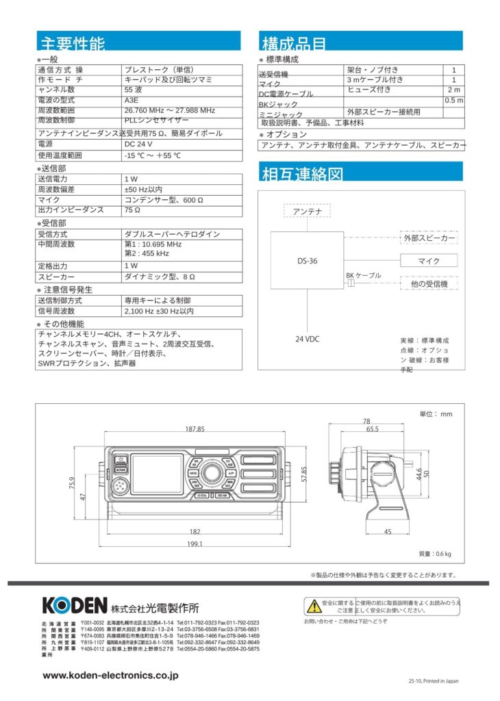 KODEN「DS-36」をはじめ、各種無線機の販売・設置・メンテナンスを承っております。